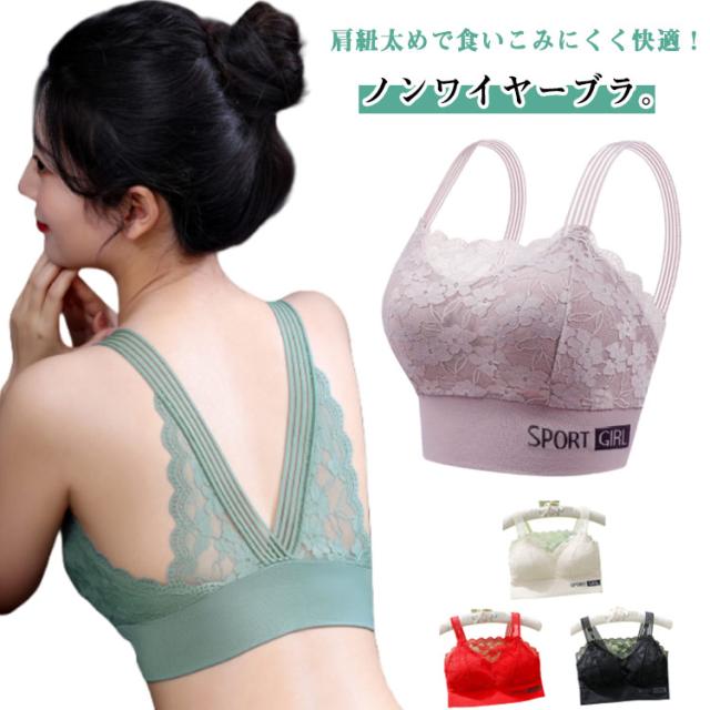 送料無料 ブラジャー ノンワイヤーブラ ホックなし ナイトブラ インナー ブラ レース花柄 フルカップブラジャー 下着 肩紐 太め ストレス軽減 脇高 寄せ上げ 寄せて引き締め 垂れ防止 横流れ予防 大人 セクシー 可愛い