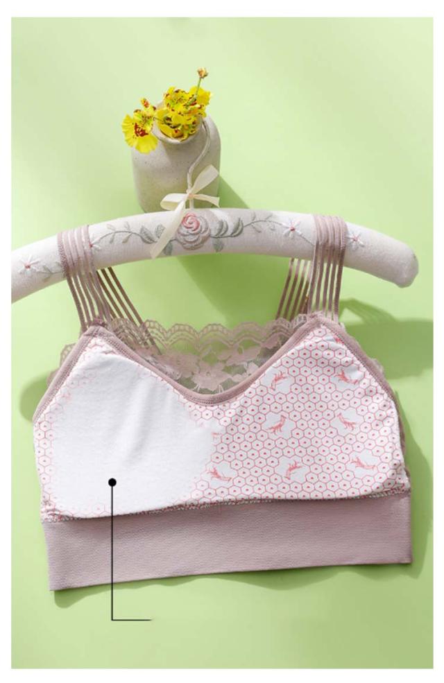| バストのボリュームを抑えて、小さく見せてくれるブラ♪ バスト全体をしっかり包み込んで、バストトップが目立ちにくい仕様。 バストの揺れを抑え、横流れを防止。 花柄レースがしっかり胸をつつんで綺麗なシルエットを作ります。 ショルダーストラップが幅広で肩に食い込まず肩こり対策にも◎ アンダー部分はノンワイヤー仕様。締めつけ感がなく快適。 サラッとした肌触りで、汗ばむ季節もムレにくいのが嬉しい♪ | |