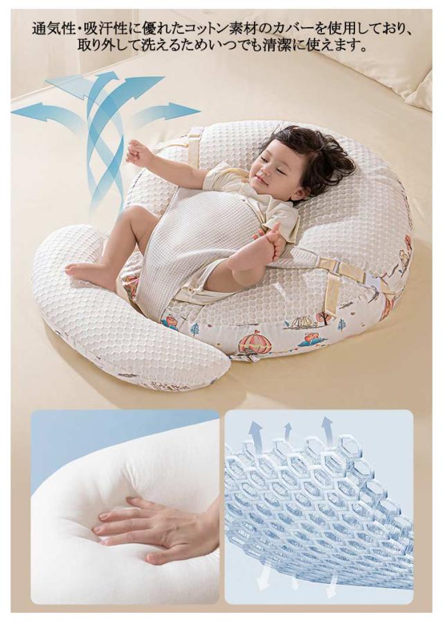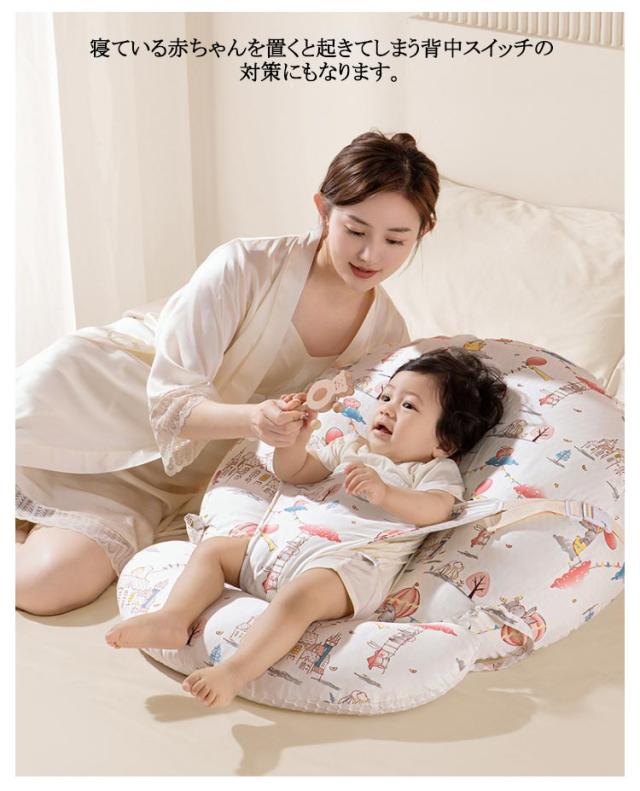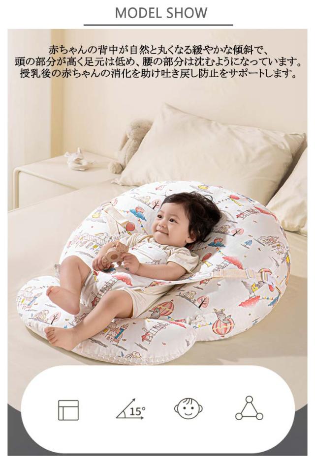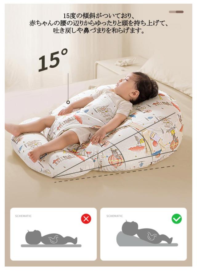 | 吐き戻し予防のスリーピングピローに!授乳後の赤ちゃんの消化を助け吐き戻し防止をサポートします! 赤ちゃんの背中が自然と丸くなる緩やかな傾斜で、頭の部分が高く足元は低め、腰の部分は沈むようになっています。授乳後の赤ちゃんの消化を助け吐き戻し防止をサポートします。 15度の傾斜がついており、赤ちゃんの腰の辺りからゆったりと頭を持ち上げて、吐き戻しや鼻づまりを和らげます。 寝ている赤ちゃんを置くと起きてしまう背中スイッチの対策にもなります。 通気性・吸汗性に優れたコットン素材のカバーを使用しており、取り外して洗えるためいつでも清潔に使えます。 吐き戻し防止ベビークッションとして以外にも、授乳クッションや抱っこ時のサポークッション、お昼寝クッションなどいろいろなシーンで活躍! 新生児〜幼児まで長く愛用できます。 | |