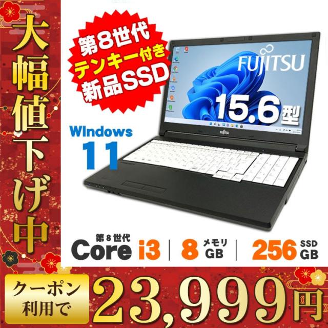 【クーポンで1,000円OFF】ノートパソコン 中古 Windows11 富士通 LIFEBOOK A579/B 15.6インチ 第8世代 Core i3 8145U メモリ8GB SSD256GB DVDROM テンキー 無線LAN Bluetooth 中古ノートパソコン Office付き タイムセール