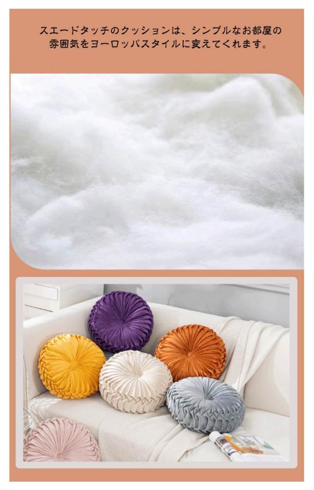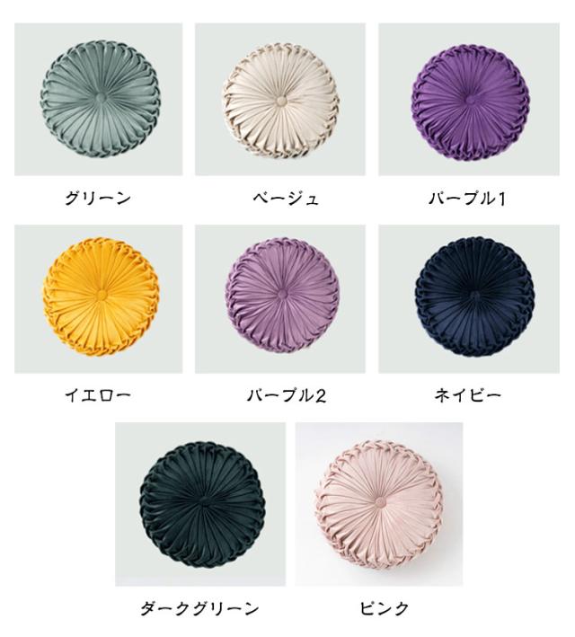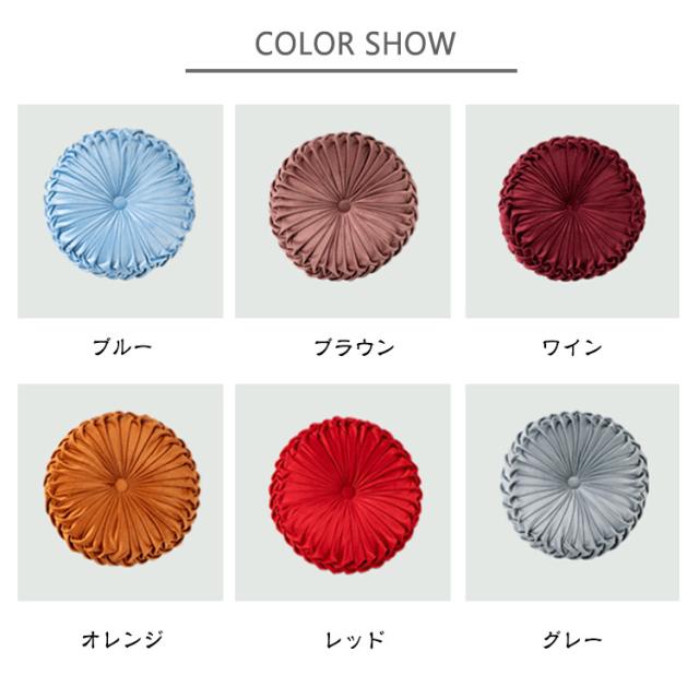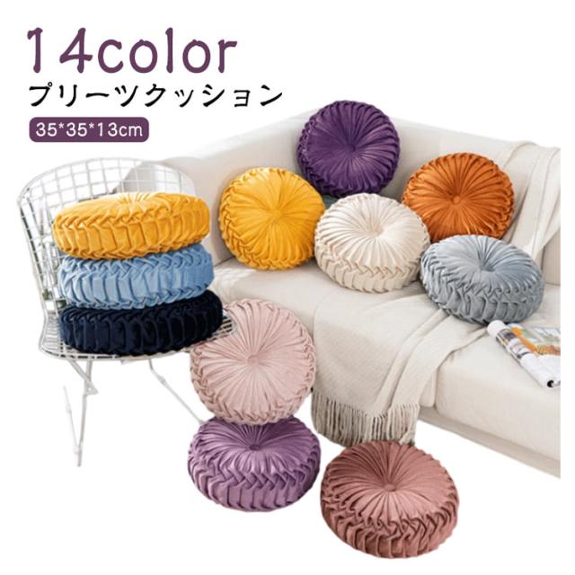 | 【プリーツクッション】 【14color】 上品なデザイン サイドまで細かなギャザーがお花のようにおしゃれなクッション! スエードタッチのクッションは、シンプルなお部屋の雰囲気をヨーロッパスタイルに変えてくれます。 オールシーズンOK! ラウンドクッションのカバーはなめらかで毛足の短いタイプの生地だから、春夏秋冬、一年中使えます。 13cmの厚みがあってヘタレにくい 円形クッションは、ざぶとんとしての機能もバッチリ♪ 使い方いろいろ: 円形クッション ローテーブル用としてジャストな高さの円クッション。 座布団にしたり、背もたれクッションにしたり、お昼寝の枕にしたり、いろいろな使い方ができます。 | |