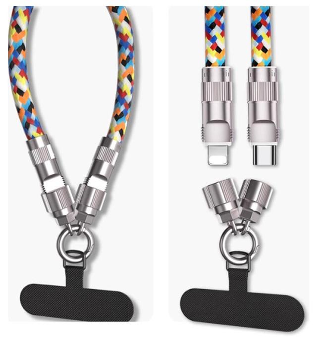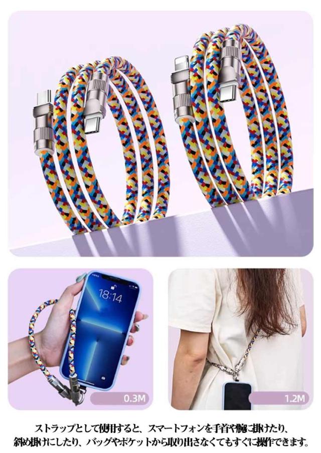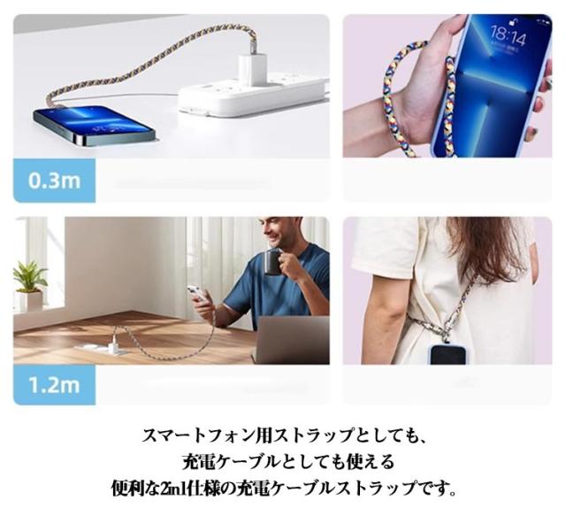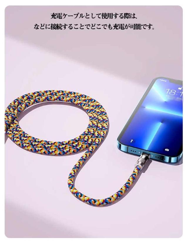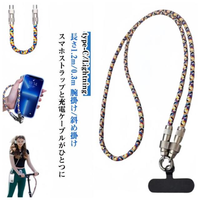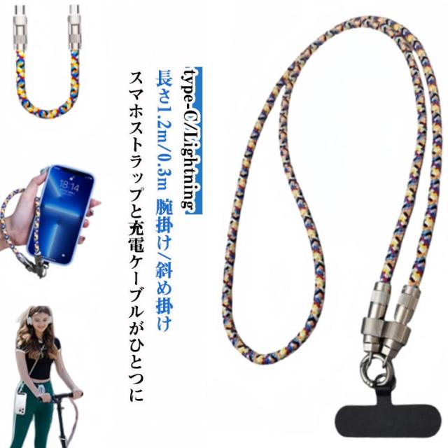 Lightning スマホストラップ ストラップ 2in1 充電ケーブル type-C 充電コード 充電ケーブル スマホショルダー 斜めがけ 肩掛け ハンドストラップ 携帯ストラップ スマホショルダー 紛失防止 落下防止 60W急速充電 高耐荷重 丈夫 耐久