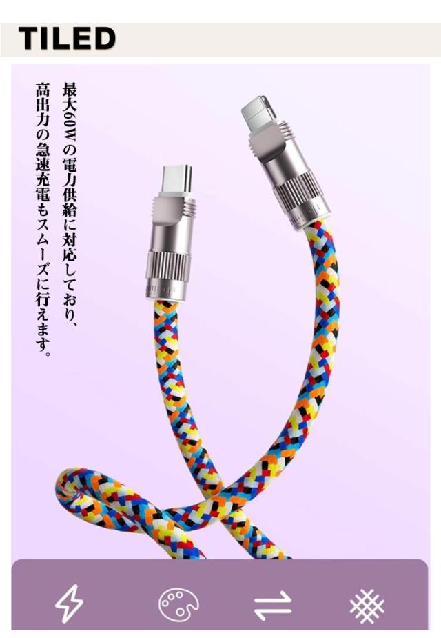 | サイズ | type-C(長さ1.2m) Lightning(長さ1.2m) Lightning(長さ0.3m) |