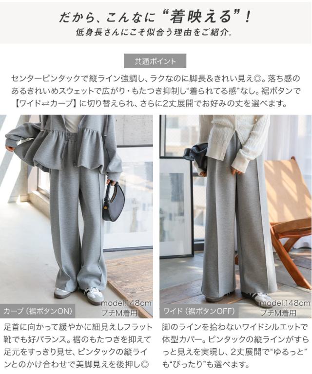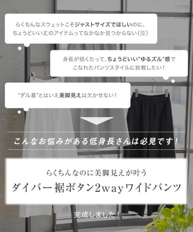 春新作 [ Petitle プチレ ] 選べる2丈 ダイバー裾ボタン2wayワイドパンツ M4249 入荷済 レディース 20代 30代 40代 低身長サイズ 低身長さん向け 低身長 低身長さんサイズ 低身長さん向けサイズ 小柄 低身長コーデ サイズ プチ