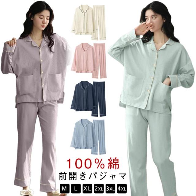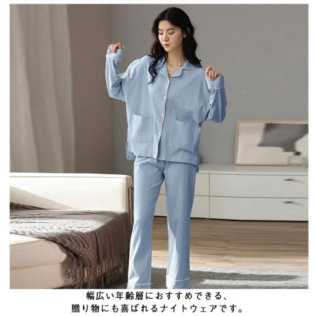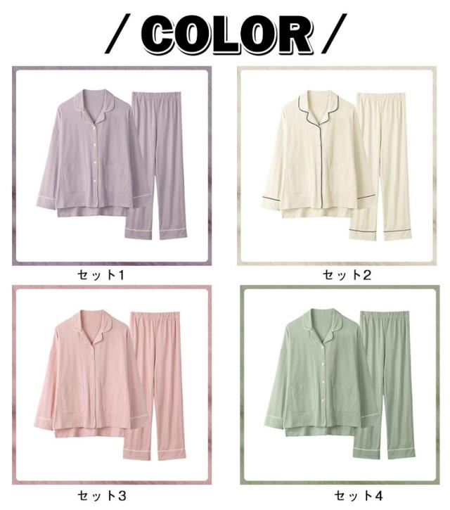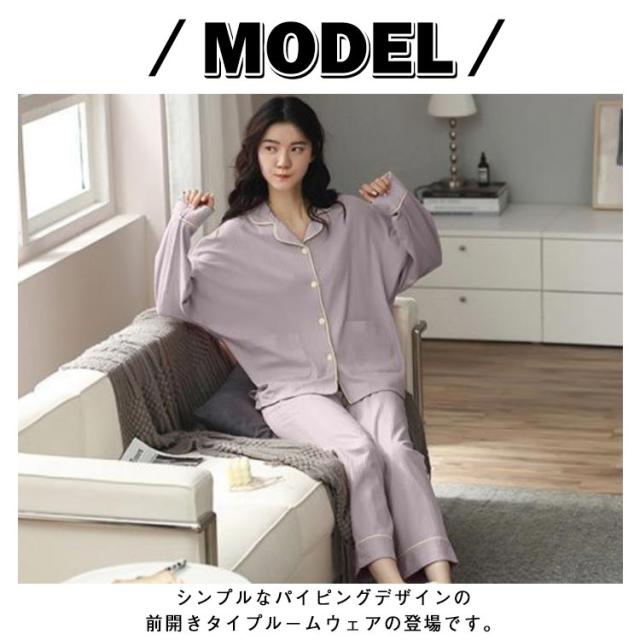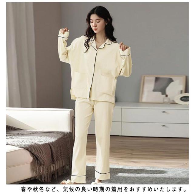 2点セット 襟付き 秋冬 50代 長袖パジャマ パイピング 長袖 上下 レディース パジャマ 祖母 セットアップ 長袖パジャマ 無地 前開き ナイトウェア 部屋着 綿100% 30代 40代 春 婦人服 ミセス 母 ルームウェア 敬老の日 プレゼント 前開きパジャマ 秋物 秋服