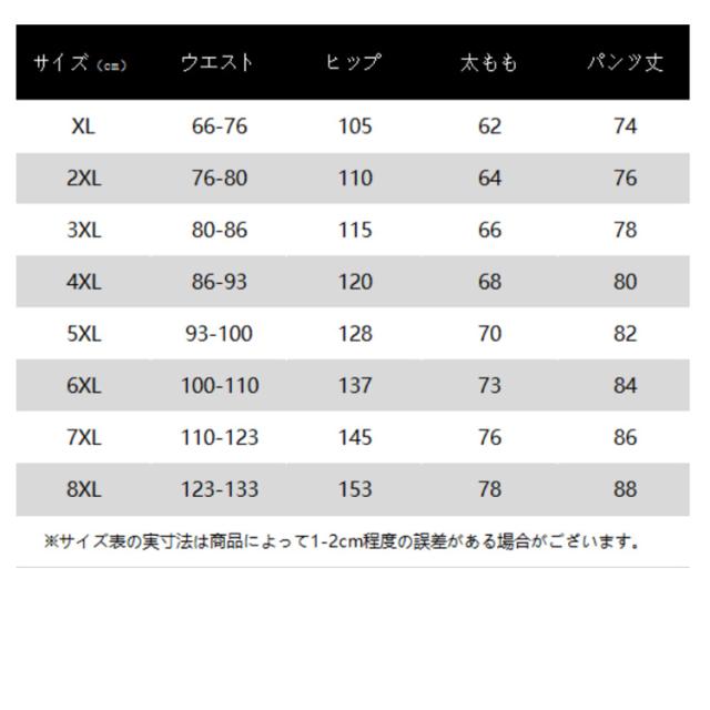 | サイズ | XL 2XL 3XL 4XL 5XL 6XL 7XL 8XL |