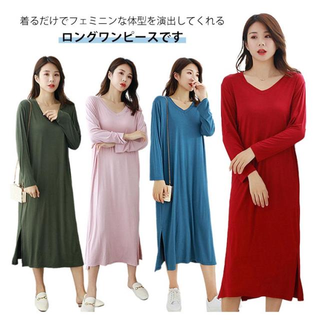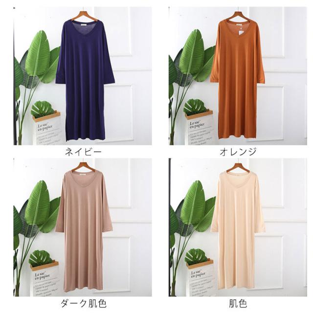 ロング丈 パジャマ ルームワンピース ロングワンピース 長袖 レディース ルームワンピース ワンピース 薄手 長袖ワンピース 薄手 体型カバー ルームウェア 部屋着 寝巻き 春秋 ゆったり 普段着 Vネック 大きいサイズ パジャマ