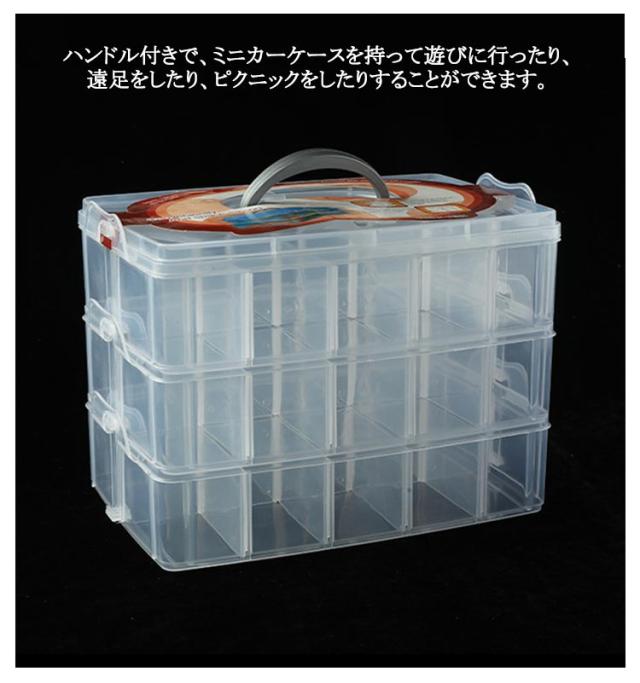 | ミニカー収納ボックス。持ち運べる便利、最大30台ミニカー収納可能なミニカー収納ケース。 1台ずつ収納できるの仕切りがあり、ミニカーを整理して入れやすくなっています。 ハンドル付きで、ミニカーケースを持って遊びに行ったり、遠足をしたり、ピクニックをしたりすることができます。 | |