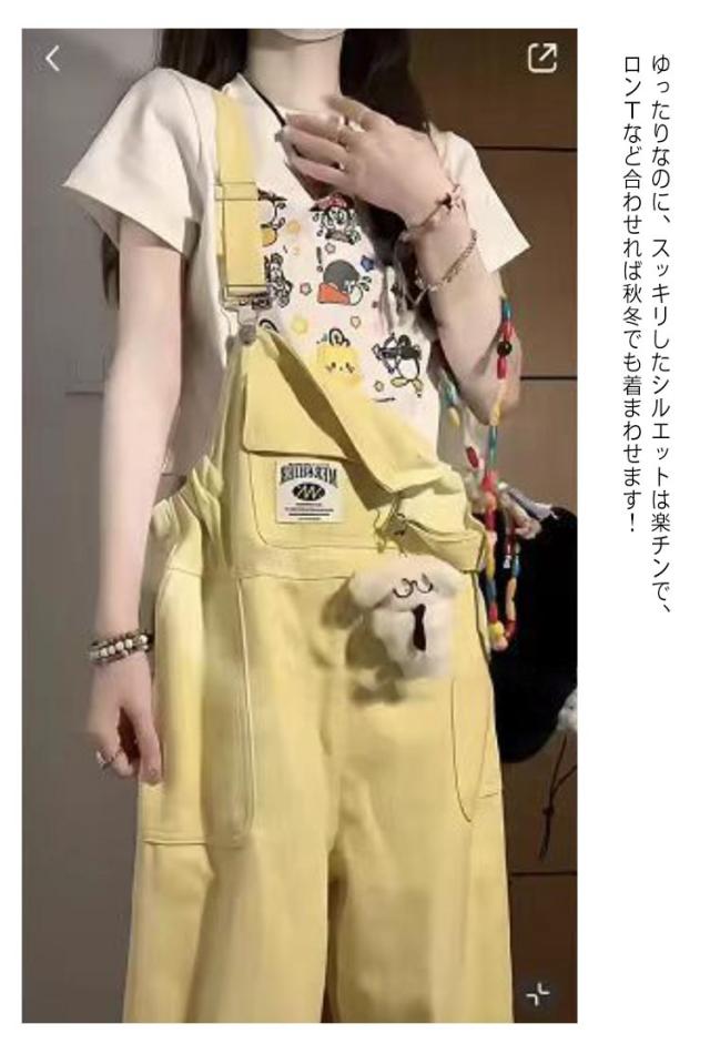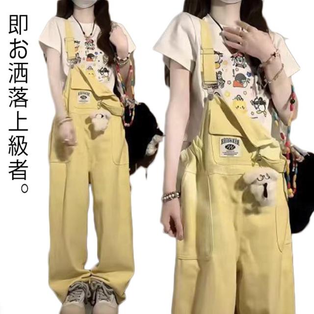 オールシーズン レディース オールインワン 肩紐調節可 ワイドシルエット オーバーオール チノパン サロペットパンツ サロペット オールインワン 楽々 カジュアル 大きいサイズ お洒落 春 オーバーオール 秋 アウトドア 可愛い イェロー 黄 大学生 美大生