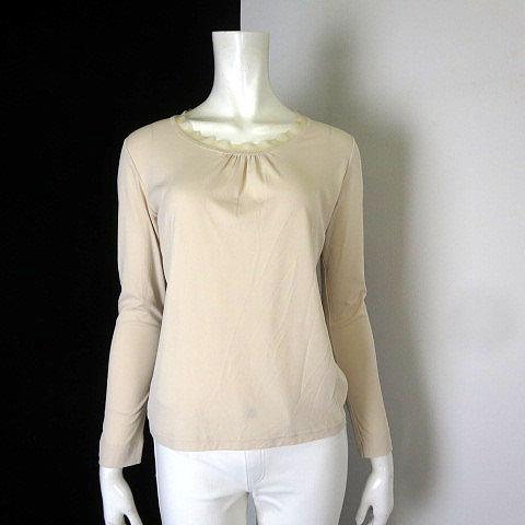 【中古】スチェッソ SUTSESO カットソー トップス プルオーバー チュール襟 ストレッチ長袖 M 40 ベージュ レディース