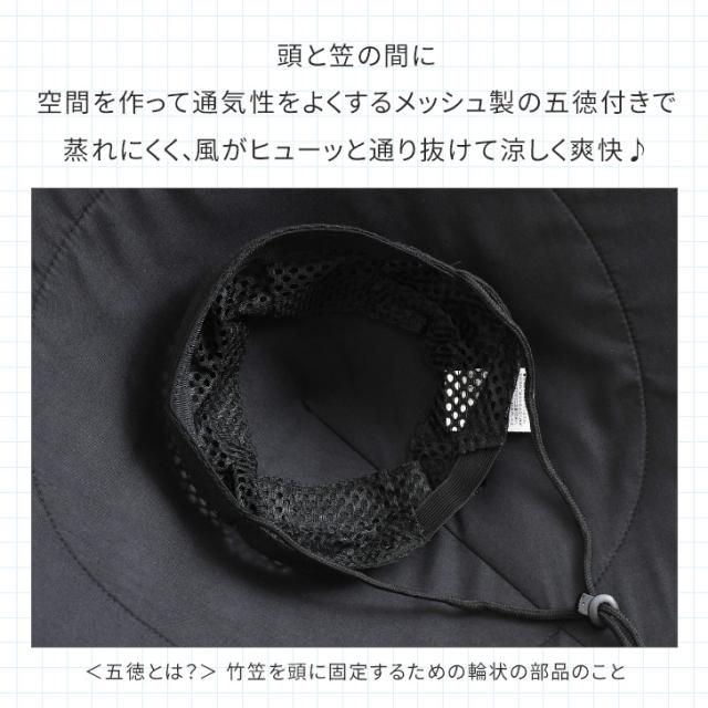 頭と笠の間に空間を作って通気性をよくするメッシュ製の五徳付きで