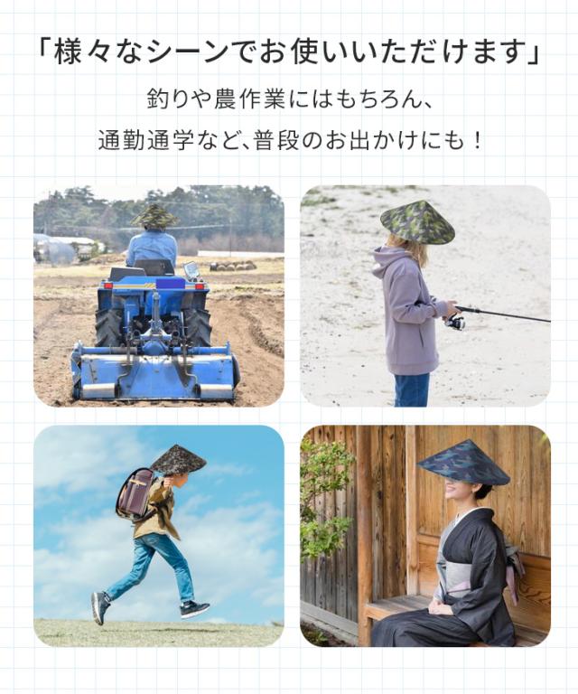 新作 迷彩柄五徳&あご紐付きUPF50+撥水EVA笠帽子 被り笠 レディース メンズ キッズ 子供 アウトドア UVカット 暑さ 熱中症対策 日よけ 紫外線対策 傘帽子 ベトナム笠 ひも付き お遍路 釣り 農作業 雪 雪かき