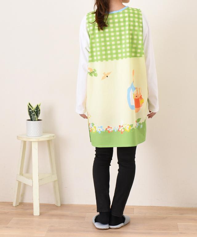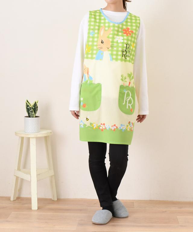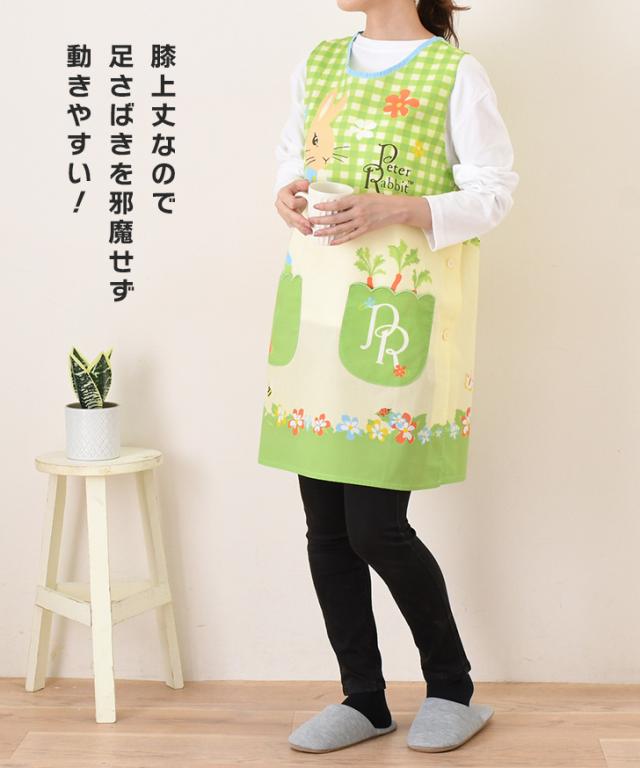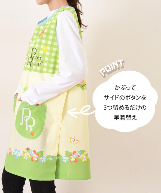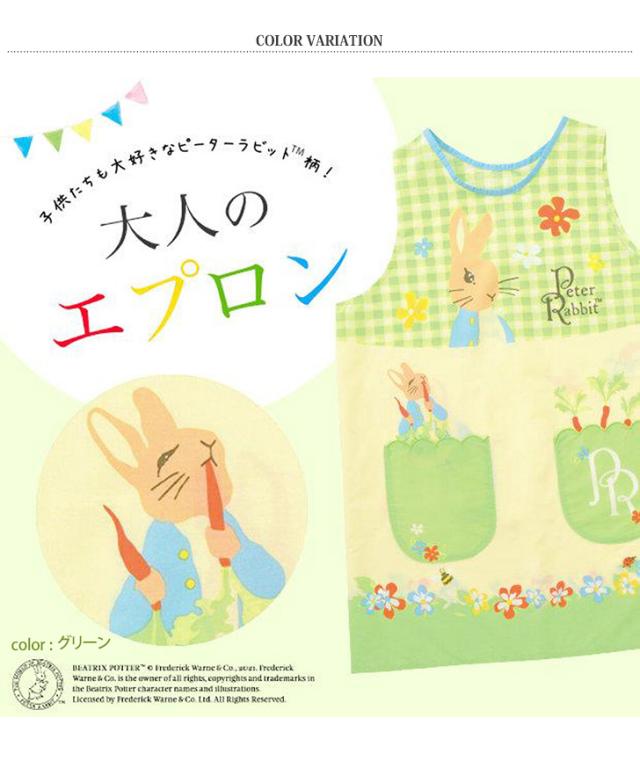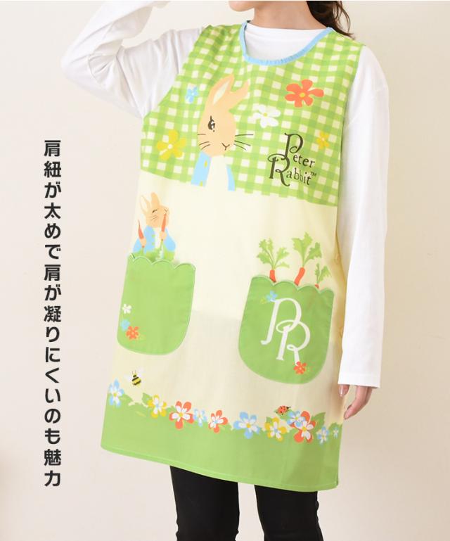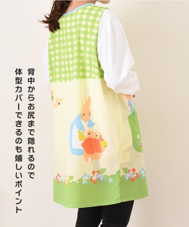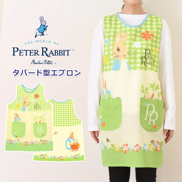 新作 ピーターラビット★タバード型エプロン レディース おしゃれ かぶるだけ ラン型 かぶり 保育士 ショート丈 短い キャラクター グッズ peter rabbit キッチン 台所 キャラクターエプロン 大人