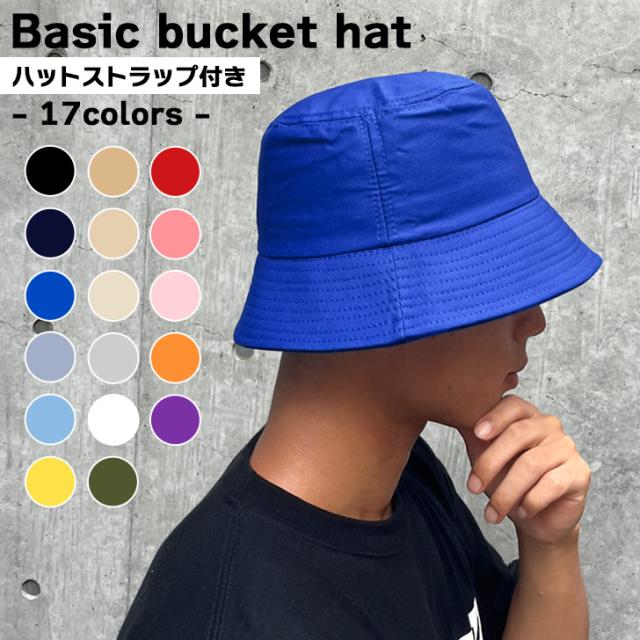新作 選べる17カラーコットン100%ハットストラップ付きベーシックバケットハット レディース メンズ 帽子 ハット バケットハット バケハ UVケア 紫外線対策 つば広 深め コットン 綿 あご紐付き おしゃれ