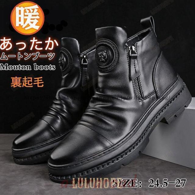 ショートブーツ ムートンブーツ メンズ 靴 冬用 スノーブーツ ふわふわ 裏起毛 厚底 防寒 暖かい 裏ボア 男性用 紳士靴 アウトドア 作業靴 冬