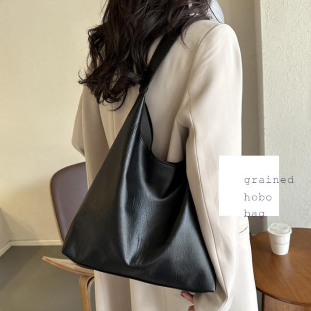 普段使いしやすいフェイクレザーホーボーバッグ