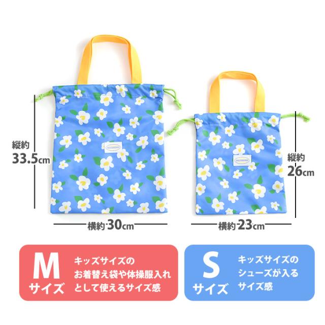 新作 選べる2サイズ×5カラー総柄撥水キッズシューズバッグ&巾着バッグ シューズバッグ シューズケース 靴袋 シューズ袋 靴入れ シューズ入れ 体操服入れ お着替え袋 子供 保育園 幼稚園 通園 通学 女の子 男の子