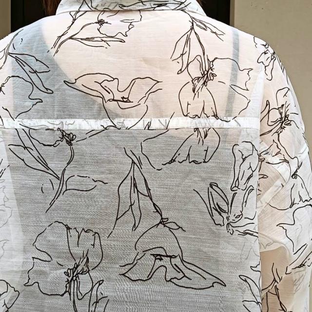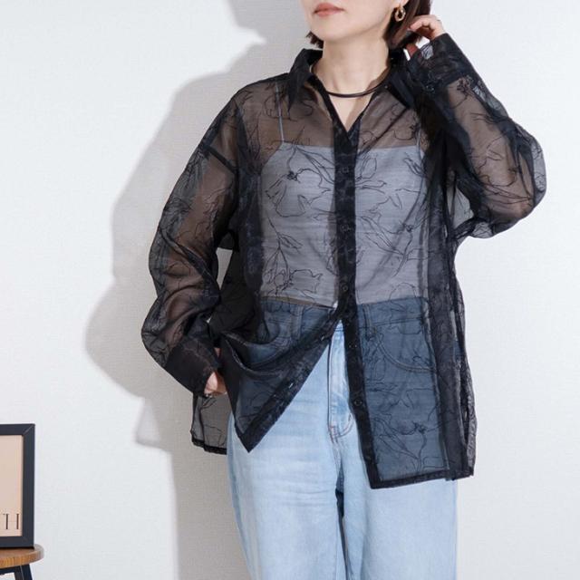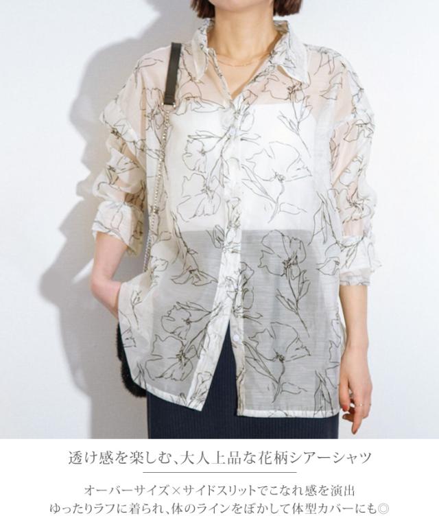 透け感を楽しむ、大人上品な花柄シアーシャツ