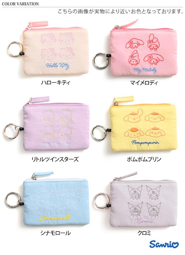 新作 サンリオ Sanrio リール&カラビナ付き ナイロン 刺繍 パスケース リール付き 定期入れ レディース パスポーチ キャラクター グッズ 小銭入れ カード入れ キーケース icカード 小物 軽量 かわいい