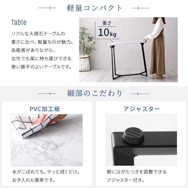 綺麗な大理石調のシートが部屋にオシャレさとクールな雰囲気を演出する大理石調ダイニング3点セット!