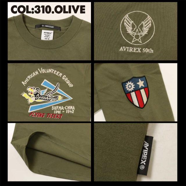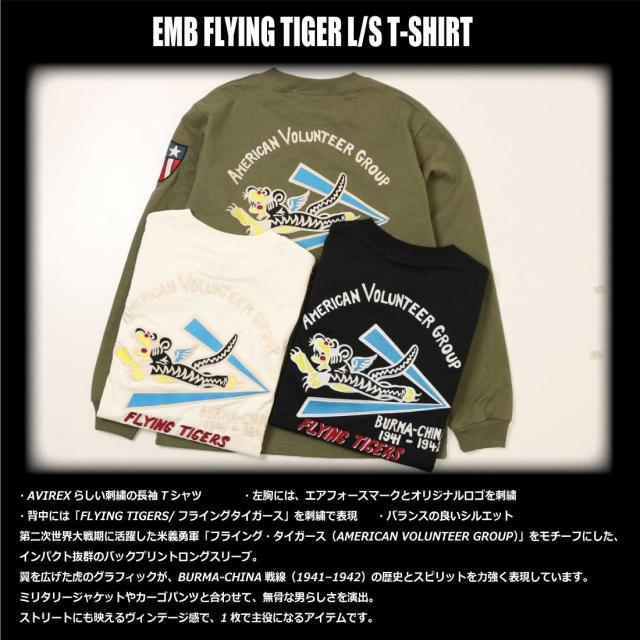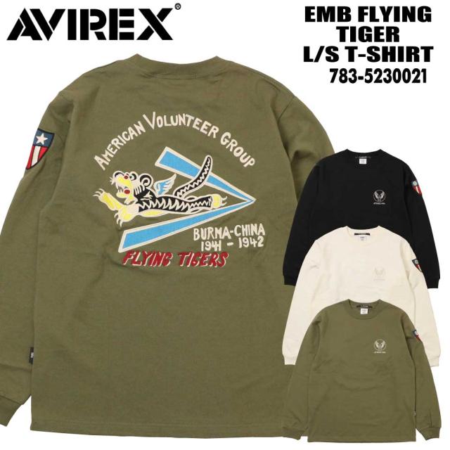 AVIREX アヴィレックス アビレックス 長袖 Tシャツ 783-5230021 クルーネック ミリタリー メンズ トップス EMB FLYING TIGER L/S T-SHIRT ロンT