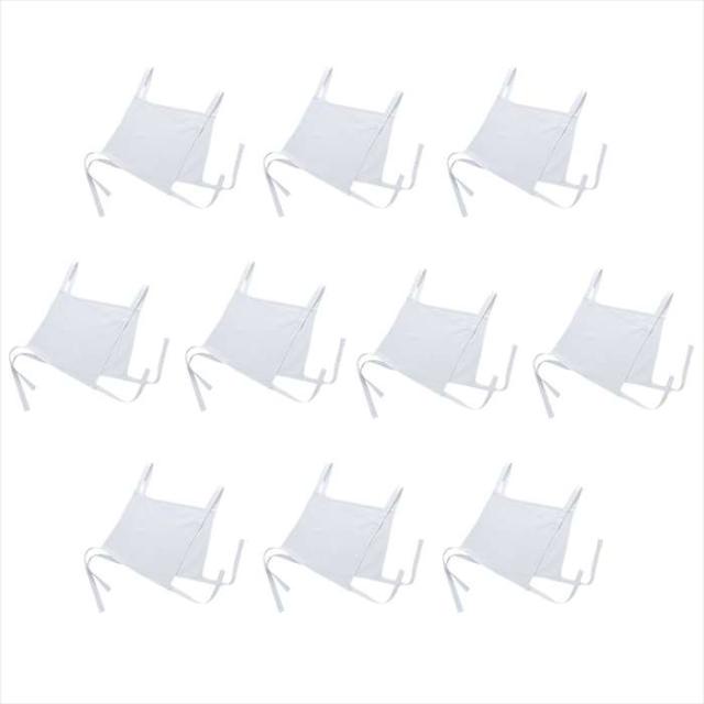 シンプルな正方形のゼッケンです。頭からかぶるタイプで着脱がスムーズです。綿100%素材で通気性が良く、快適に着用できます。リレーや運動会などの競技におすすめです。お得な10枚組なので、団体利用にもピッタリです。