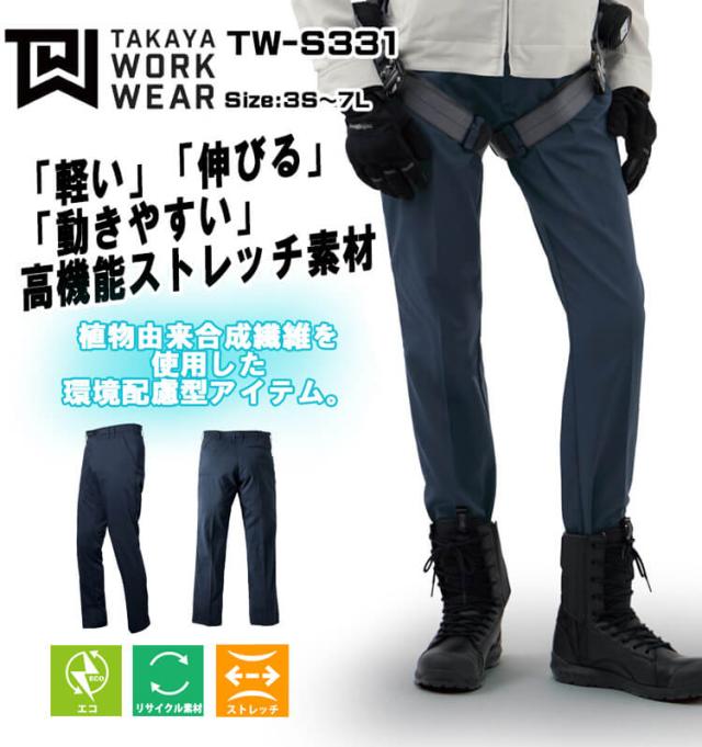 タカヤ商事 タカヤワークウェア デザインパンツ TW-S331 春夏 サイズ3S〜LL ストレッチ エコ素材 作業服