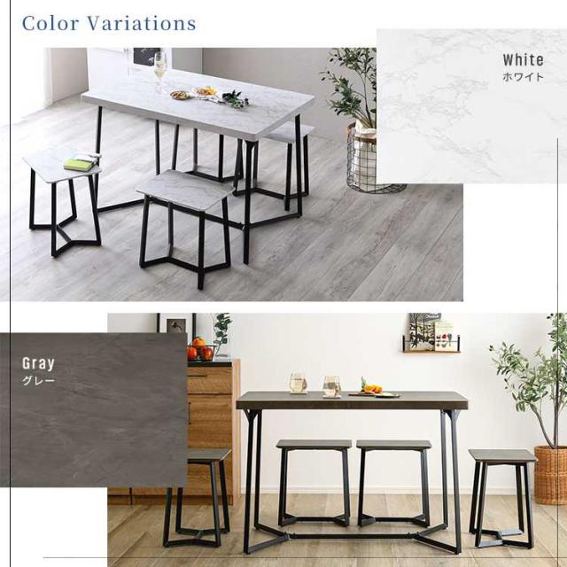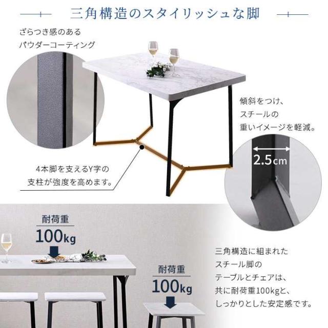 綺麗な大理石調のシートが部屋にオシャレさとクールな雰囲気を演出する大理石調ダイニング5点セット!