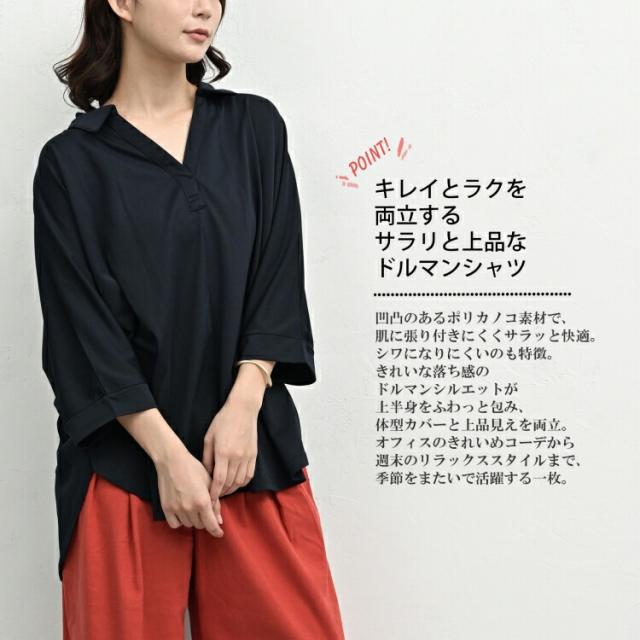 cla-ssa-tp0611 【メール便対応】キレイとラクを両立するサラリと上品なドルマンスキッパーシャツ。 大きいサイズ レディース 7分袖トップス 7分袖シャツ 7分袖ブラウス シャツチュニック スキッパーシャツ ドルマンスリーブ ドルマンシャツ スキッパー襟 7分袖 七分袖 無地 ラウンドヘム 春服 夏服 秋服 春物 夏物 秋物 春トップス 夏トップス 秋トップス 春シャツ 秋シャツ お尻が隠れる着丈 お尻すっぽり丈 チュニック丈 シワになりにくい 軽量 軽い 涼しい 体型カバー ゆったり 大きめ 大人 カジュアル フェミニン ナチュラル 大人可愛い きれいめ かわいい 着こなし おしゃれ 定番 春コーデ 夏コーデ 秋コーデ ファッション 大きめ 女性 婦人用 ミセス 30代 40代 50代 2025 秋新作 春 夏 秋 黒 LL 3L 4L 5L 13号 15号 17号 19号 cla-ssa-tp0611