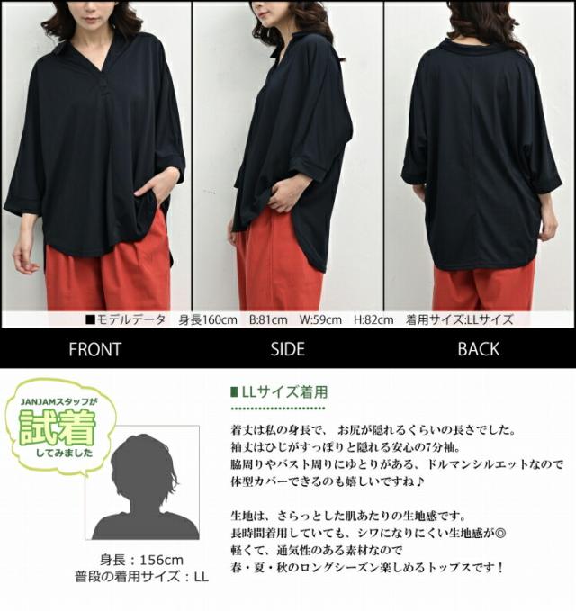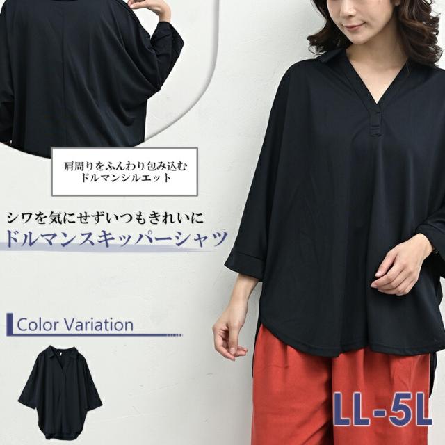 大きいサイズ レディース ドルマンスキッパーシャツ メール便対応 7分袖 ドルマンスリーブ ブラウス トップス LL/3L/4L/5L ゆったりサイズ ぽっちゃり女子 プラスサイズ
