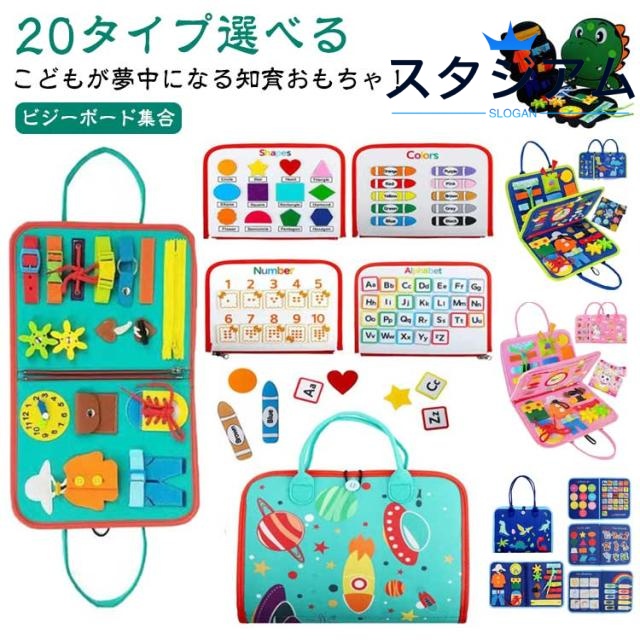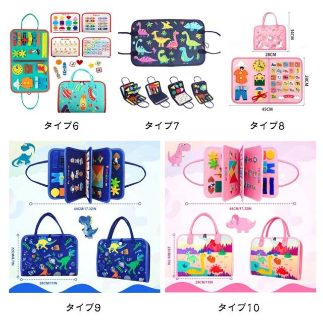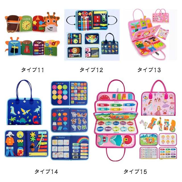 | ビジーボード集合 20タイプ選べる 【こどもが夢中になる知育おもちゃ!】 豊かなボタン、バックル、靴紐、ジッパーなどで遊べる、「ビジーボード」と呼ばれる知育用玩具です。一般に洋服についている留め具をまとめてあるオモチャで、子供の知力、創造性を刺激し、能力の開発に役立ちます。 【お着替えの練習に】 衣類のよく使われている留め具、ボタンなどを網羅しており、お子様のお着替えの練習に役立ちます。 【指先訓練に】 紐を引っ張ったり、チャックを開けたり、様々な動作が可能で、お子様の問題解決力や探究心を育てます。つなぐ、はずすを繰り返し、指先を動かすことで脳の活性化に繋がります。 【形と色の認識できる知育玩具】 遊びながら集中力を養い、色彩の認識力を高めます。10種類以上の形状がセットして、勉強力もアップします。 【脳の発達を助ける】 このモンテッソーリのおもちゃは、子供の手と目の協調のスキルを伸ばし、色の認識を学び、創造的な遊びを促進するのに役立ちます。親は子供と一緒に木のおもちゃを遊んで、親と子供の間の相互作用を増やすことができます。 【子供のための最高の贈り物】 楽しいおもちゃであるだけでなく、優れた学習ツールでもあります。 3歳以上の子供に適しています。プレゼントとして最適?クリスマスお誕生日等のお祝いの日におすすめ? ■折りたたむことにより、バッグタイプに変形。持ち運びも容易です。 ■洗濯、水洗い可能、常に清潔に保てます。 ■対象年齢:0歳?6歳ぐらいの歳のお子様の遊びにピッタリです。※0?1歳では力が必要な一部ボタンは開けられない可能性があります。 | |