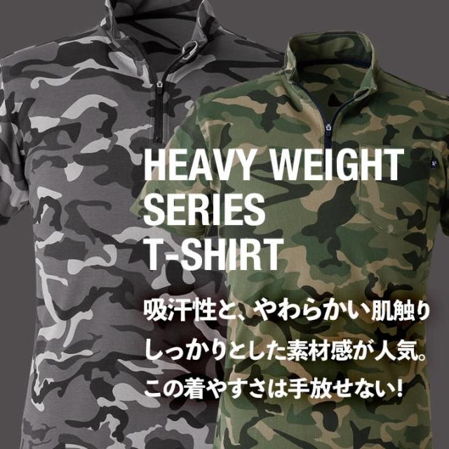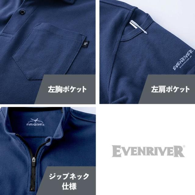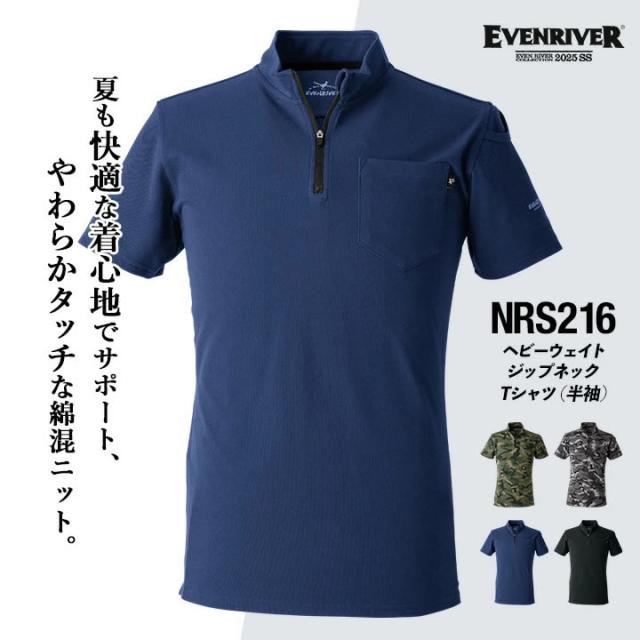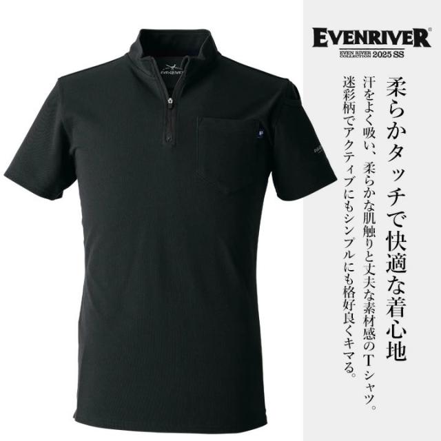イーブンリバー Tシャツ 半袖 ジップネック ヘビーウェイト NRS216 吸汗 迷彩 春夏 移動着 作業服 作業着 アウトドア スポーツ 自転車 EVENRIVER