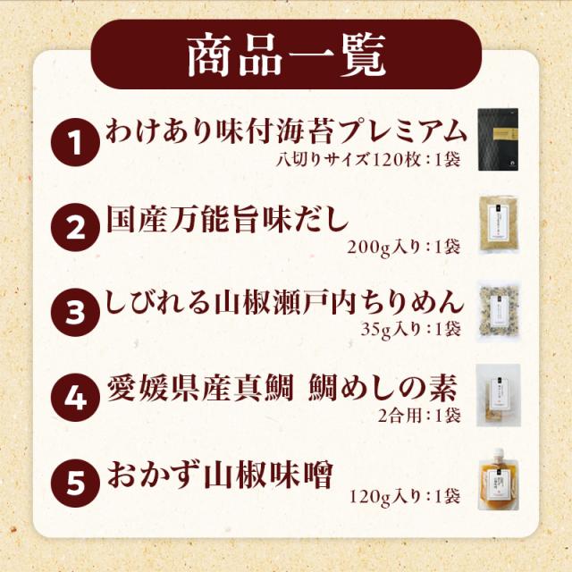 【19%OFF!単品合計4,970円→3,999円】 ごはんのおとも 福袋 2025 訳あり 有明産 味付け海苔 ちりめん山椒 鯛めし 炊き込みご飯 出汁 旨味 パウダー 山椒味噌 おかず味噌 送料無料 プレミアム 8切 ご飯のお供 おにぎりのり 高級海苔 訳あり商品 ポイント消化