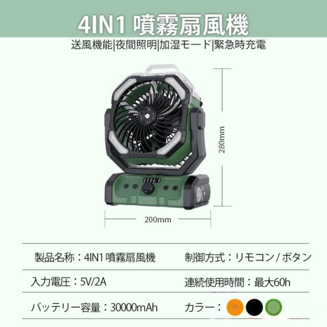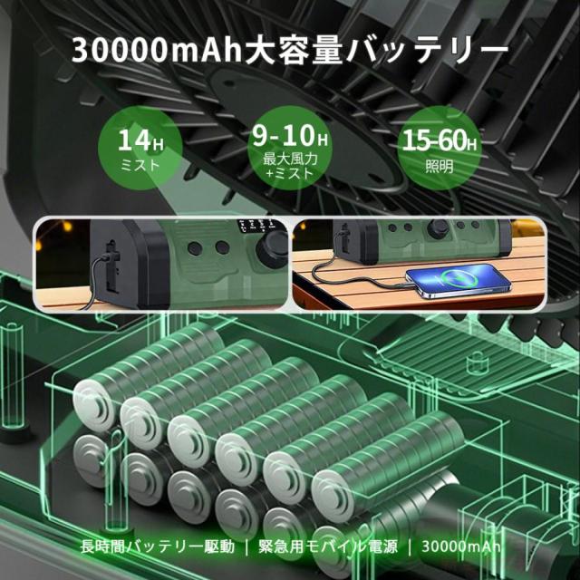 扇風機 キャンプ 扇風機 アウトドア 扇風機 冷風機 ミストファン 30000mAh 大容量バッテリー ミスト 瞬間冷却 卓上扇風機 サーキュレーター 省エネ アウトドア