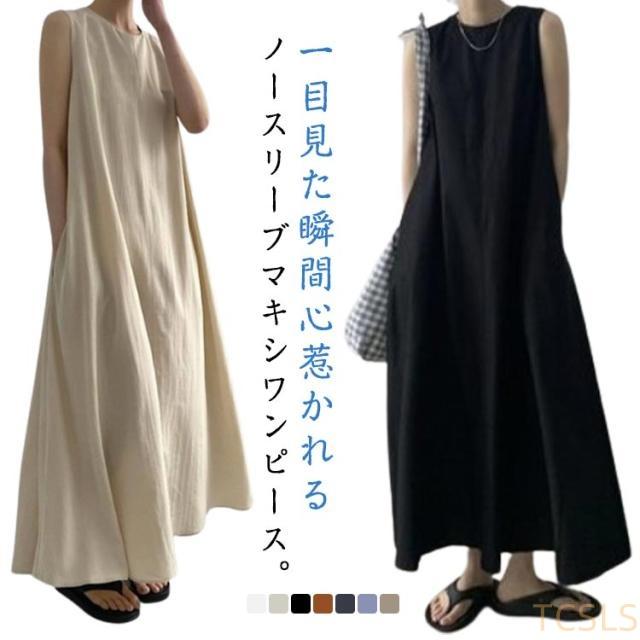 きれいめ マキシワンピ ノースリーブ ワンピ ワンピース ノースリーブ 体型カバー ロング ロングワンピース ロングワンピ マキシ ゆったり 大きいサイズ ナチュラル マキシワンピース 3代 40代 50代 春夏
