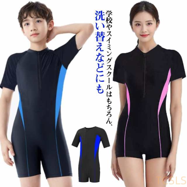 スクール水着 女の子 女子 小学生 前ファスナー 子供 つなぎ服 男子 キッズ 子ども フィットネス水着 中学生 スクール水着 短パン 水着 半袖 tシャツ UVカット 男の子 小学校 UPF 紫外線対策