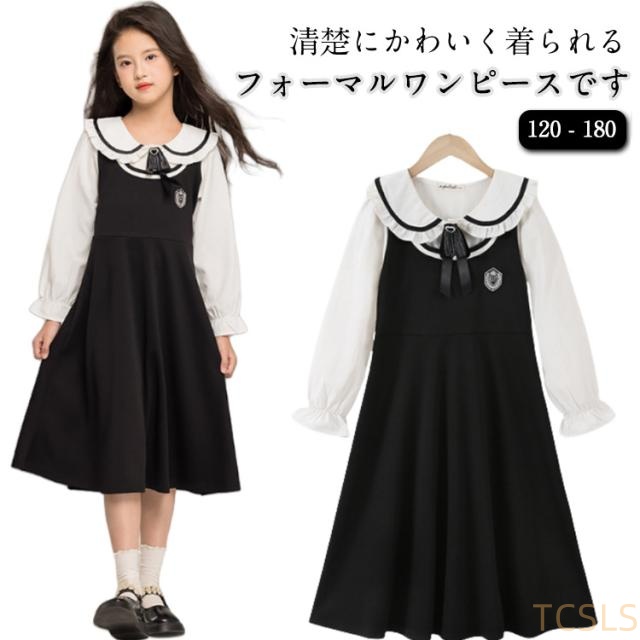 ワンピース 発表会 長袖ワンピース フォーマル フォーマル キッズ フォーマル 子供服 春 秋 白襟 ブラック ワンピース 膝下丈 入学式 子供服 結婚式 ワンピース 通園 通学
