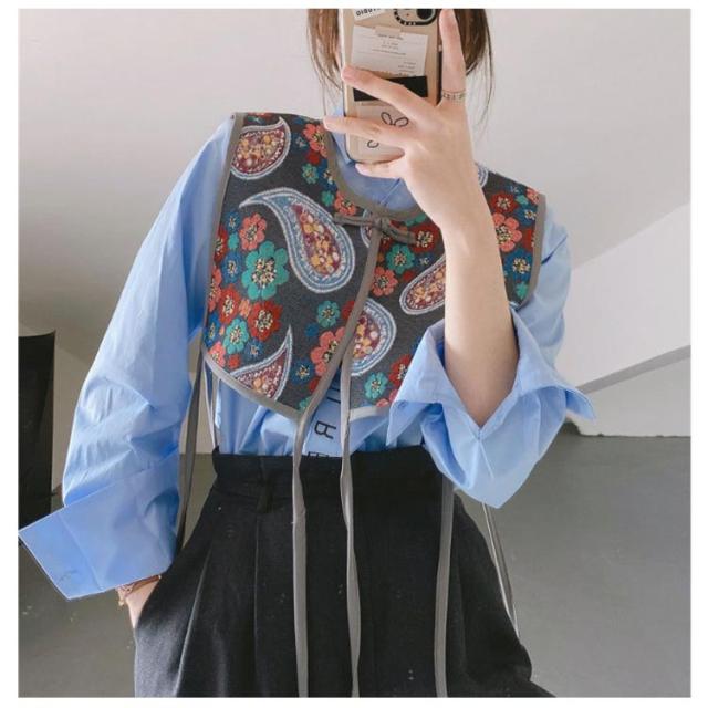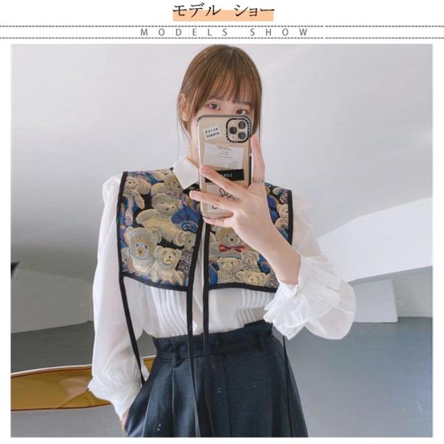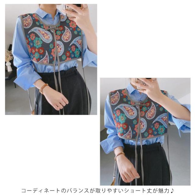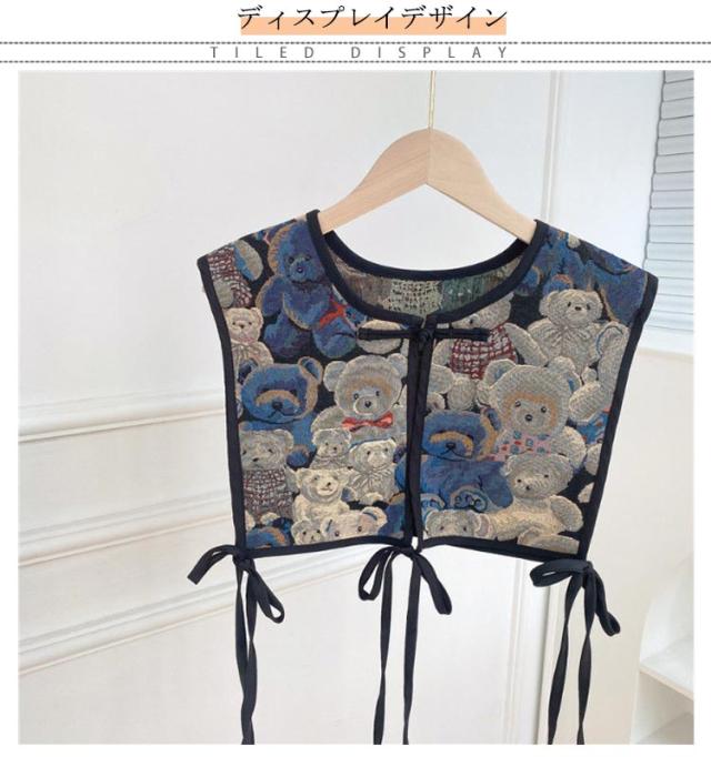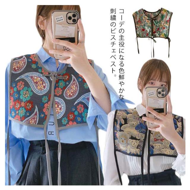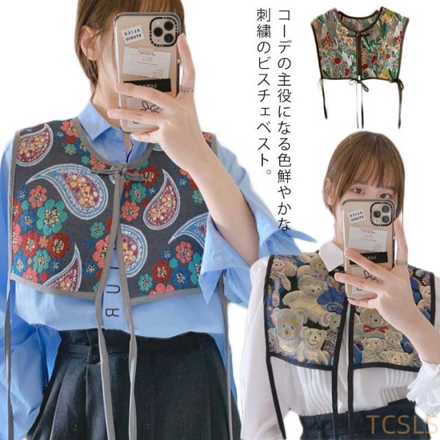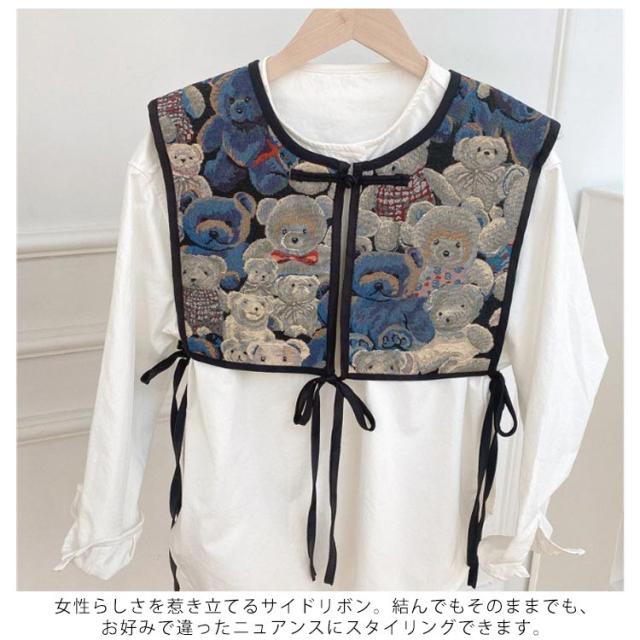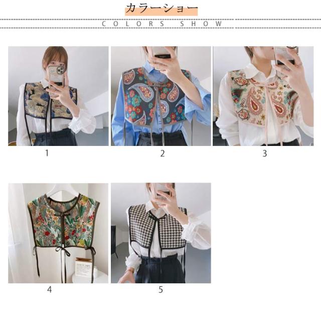 付け襟 ビスチェ ベスト レディース 刺繍 つけ襟 ビッグカラー セーラーカラー つけ衿 つけえり ヴィンテージ風 レトロ ジャガード 総柄 ショート丈 セーラー襟 セーラー衿 チャイナボタン サイドリボン レイヤード 重ね着 カジュアル きれいめ 大人 アクセサリー 送料無料