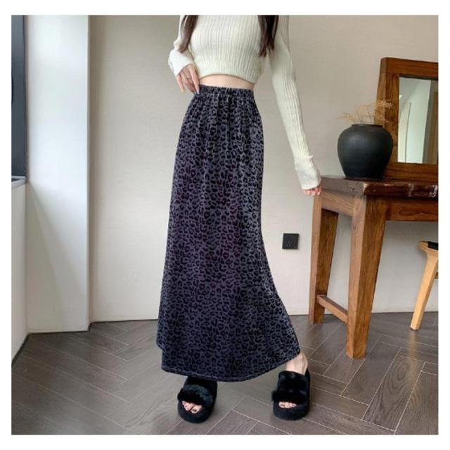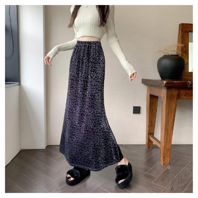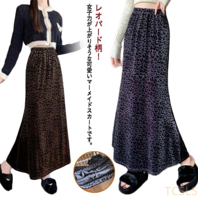 ロングスカート ぺロア おしゃれ マーメイドスカート 3XL XL ウエストゴム マキシ丈 レオパード柄 レトロ 秋冬 Aライン 大きいサイズ M L 韓国ファッション 2XL マーメイドスカート 4XL 5XL