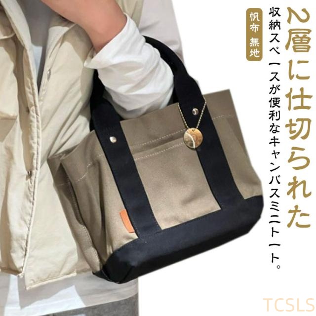 ミニトートバッグ ミニトート トートバッグ トート ミニ レディース 二層式 仕切りポケット レディース キャンバス 帆布 ランチバッグ ママバッグ マザーズバッグ 多収納 かわいい シンプル おしゃれ 便利 無地 女性 通勤 通学 送料無料