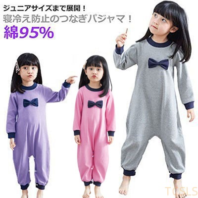 | ジュニアサイズまで展開!寝冷え防止のつなぎパジャマ! 90cmサイズから160cmサイズまでを取り揃え、小学生/中学生も着用できるようになっている。 つなぎタイプなので、寝ている間にお腹が冷えてしまう心配もありません。 肌触り優しい綿95%生地で、通気性・吸汗性も抜群、大切なお子様により快適な快眠を◎ 股下はスナップボタンで全開できるから、トイレやおむつ替えもラクラク! 可愛いリボンデザイン、ゆったりとしたサイズ感で、日中の部屋着としても活躍してくれそうですね。 | |