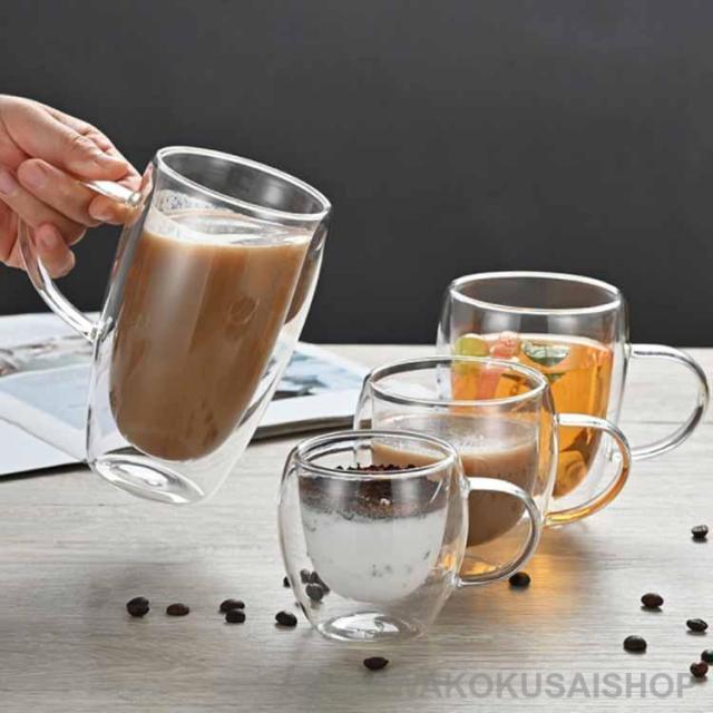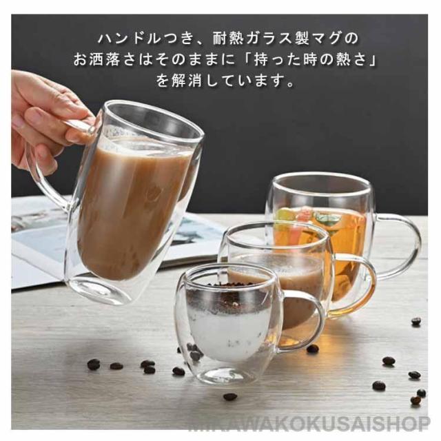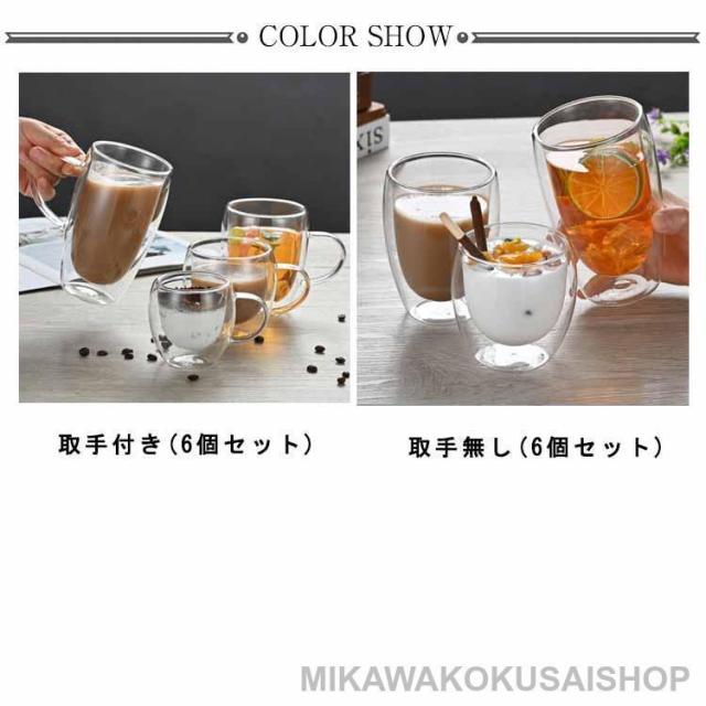 ガラスコップ 取手付き 耐熱 コップ お茶カップ ガラスコップ マッグカップ 二重グラス ダブルウォールグラス 6個セット ティーカップ ガラス カッ