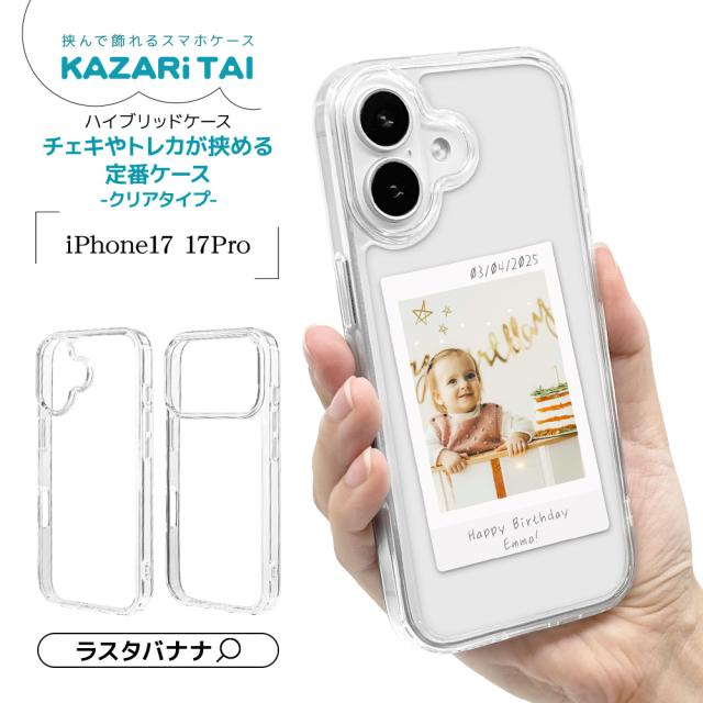 iPhone17 17 Pro ケース カバー ハイブリッド 耐衝撃吸収 TPUバンパーケース クリア 写真が挟める 推し活 ワイヤレス充電対応 KAZARi TAI カザリタイ アイフォン スマホケース ラスタバナナ