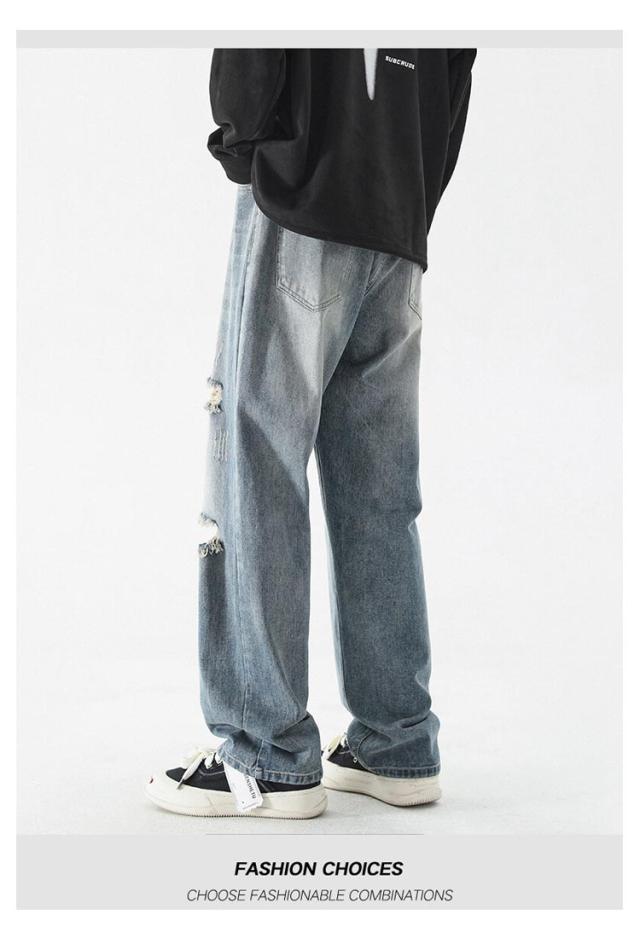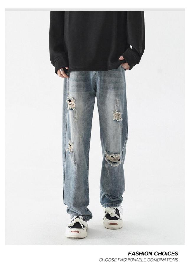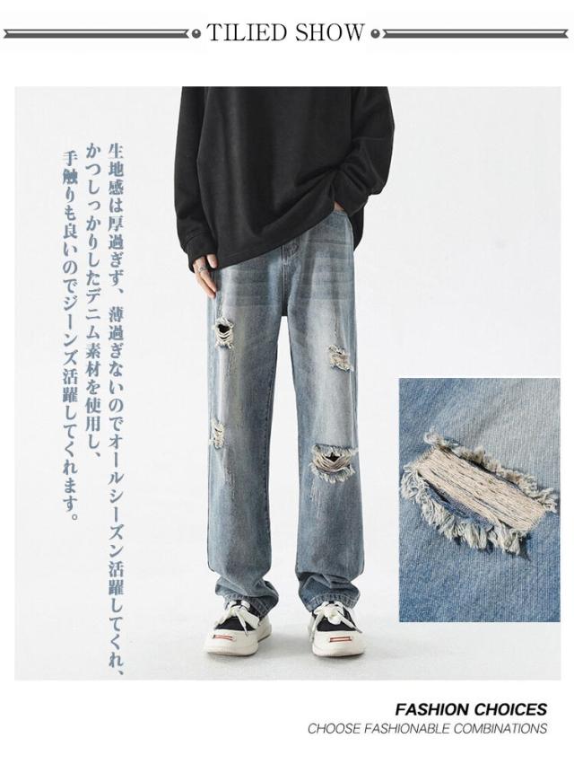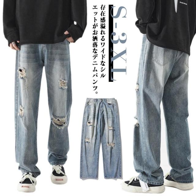 メンズ ジーンズ ダメージ 秋 ワイドパンツ ゆったり 大きいサイズ ジーパン 春 夏 ロングパンツ 冬 バギーパンツ ズボン カジュアル デニムパンツ