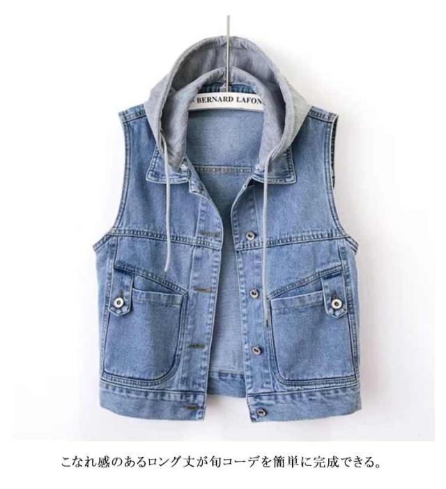 | 大人カジュアルスタイルにデニムベスト。 シンプルなTシャツの上に羽織るだけおしゃれ決まり! こなれ感のあるロング丈が旬コーデを簡単に完成できる。 おしゃれ上級者に欠かせないデニムベストです。 | |