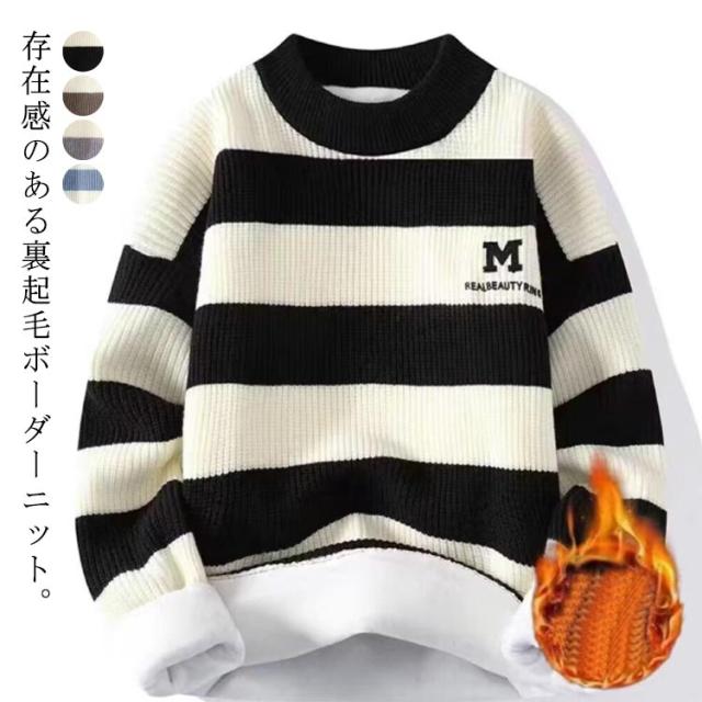 冬 秋 丸首 セーター 裏起毛 ニットプルオーバー 通学 メンズ オーバーサイズ 厚手 クルーネック ニット トップス ゆったり 畦編み ニットセーター 厚手ニット 防寒 暖かい カジュアル ストリート 裏起毛 通勤 大きいサイズ 韓国風 おしゃれ