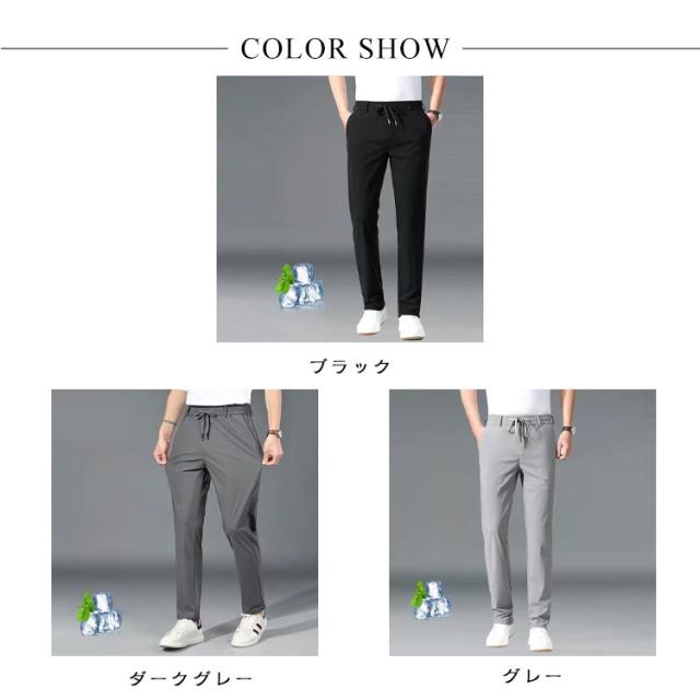 涼しい カジュアルパンツ 冷感パンツ 通気 吸汗 接触冷感 ボトムス メンズ ストレッチパンツ ストレートパンツ イージーパンツ ズボン 大きいサイズ 調整可能 薄手 夏 春 秋 スポーツパンツ メンズ 速乾