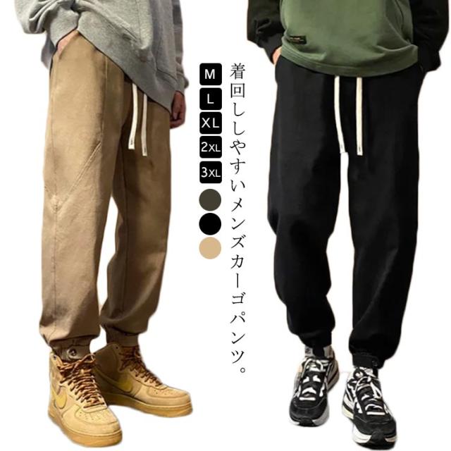 紐付き カーゴ メンズ 無地 パンツ サルエルパンツ ロングパンツ ボトムス ワイド ワークパンツ 長ズボン キャンプ カジュアル ウエストゴム ワークパンツ ポケット付き シンプル 春 アウトドア 秋 大きいサイズ グリーン ブラック カーゴパンツ