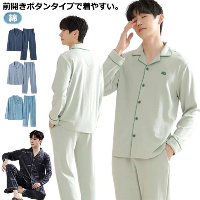 ルームパンツ パジャマ 綿 ルームパンツ メンズ 春 春秋 長袖 秋 夏 2点セット 上下セット 前開き パジャマ 上下 メンズ 夏 ルームウェア 寝巻き 薄手 紳士 部屋着 男性 ナイトウェア 入院 長ズボン