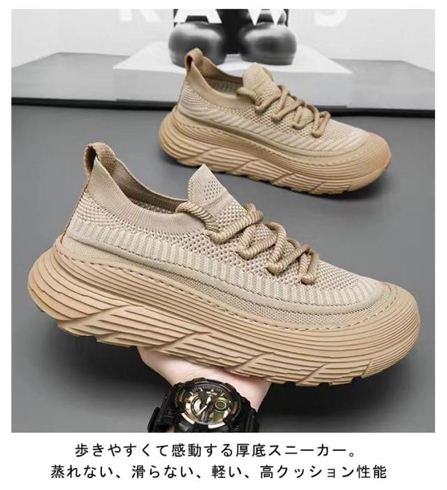 | 歩きやすくて感動する厚底スニーカー。蒸れない、滑らない、軽い、高クッション性能 耐摩耗性と防滑兼備のアウトソールが使用されるため、ランニング、ジョギング、ウォーキングなどあらゆる場面にお使い頂ける万能靴です。 アッパーには軽量でサポート性に優れたフライニットを配置し,通気メッシュと吸汗生地のライナーが採用され、通気性と速乾性が優れて。 歩行時の衝撃を吸収するので、足や膝に優しい。 軽量、高クッション性、高耐久性を実現しました | |